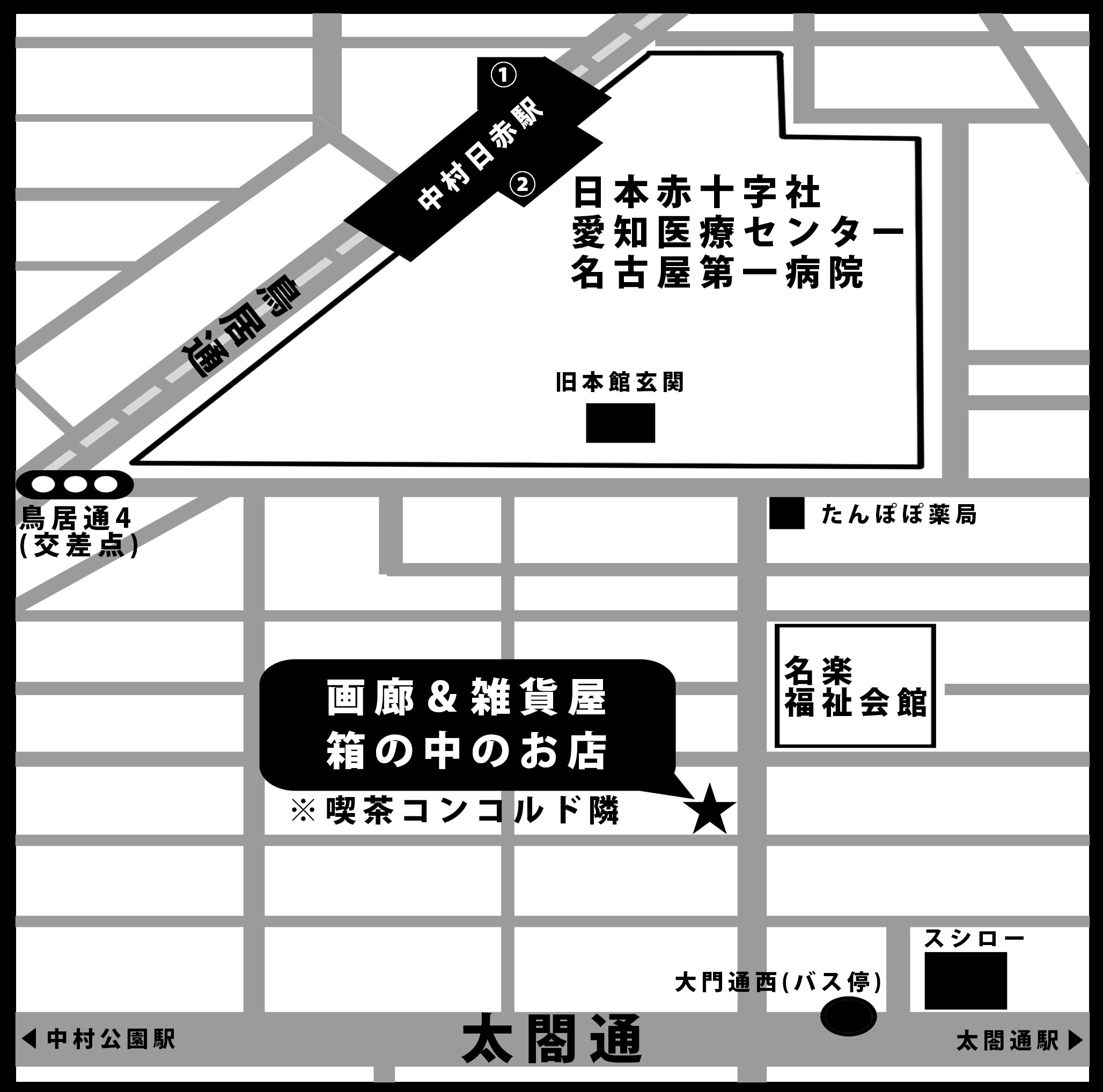 中村日赤駅より中村日赤病院(日本赤十字社愛知医療センター名古屋第一病院)の敷地内、あるいは駅からの直結通路を用いて中を抜けることもできます。