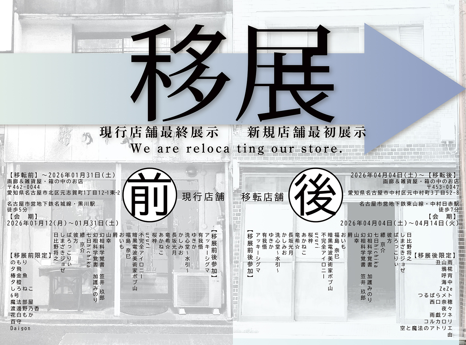 現行店舗での最終展示および移転先での初展示を、下記の通り開催いたします。