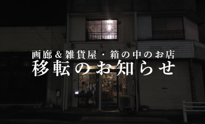 いつもお世話になっております。箱の中のユーフォリアでございます。画廊&雑貨屋「箱の中のお店」より、大切なお知らせがございます。この度、2026年1月末をもって現行店舗を一時閉店し、移転する運びとなりました。店舗建物の老朽…